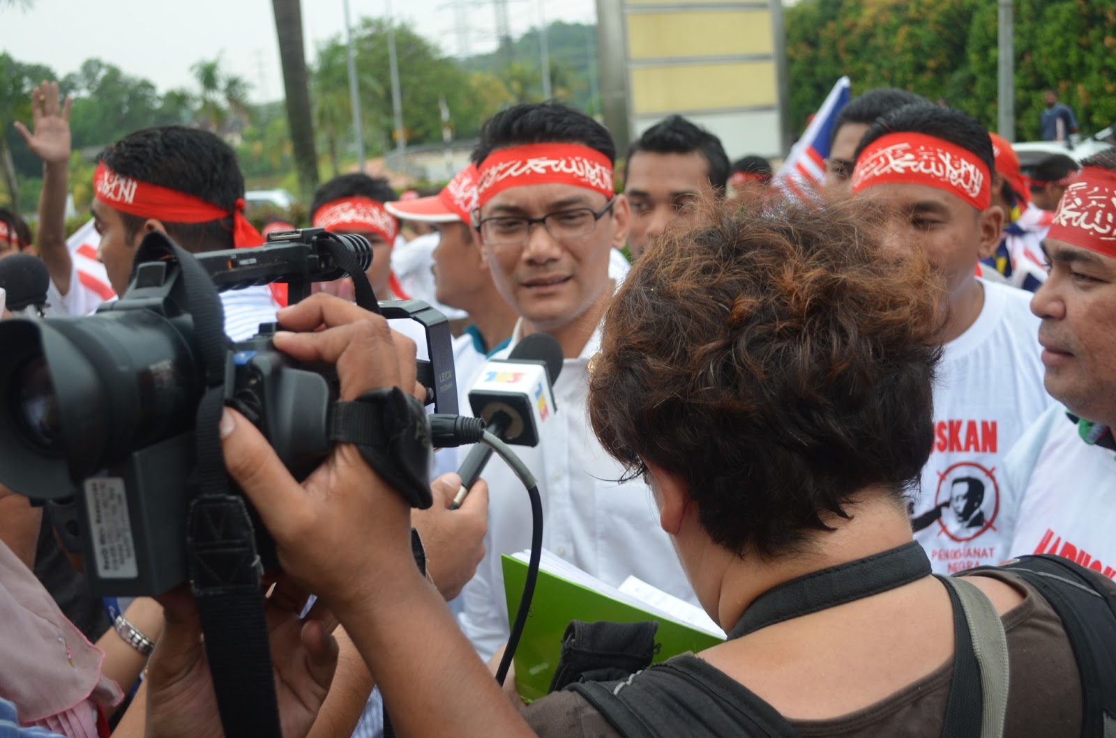 Antara peserta demo yang berkumpul berhampiran Pejabat PKR