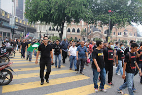 Aku kemudian bergerak ke Dataran Merdeka tempat favourite aku bila membuat liputan begini yang merupakan laluan utama semua kumpulan yang berkumpul di tujuh checkpoint #622 untuk ke Taman Merbok dan menanti disitu.Setelah semua kumpulan aku pastikan sudah ke Taman Merbok baru aku menyusul mereka lebihkurang jam 3 petang.Kalau mengikut pemerhatian aku kehadhiran sebentar tadi dalam anggaran 10 ribu peserta plus and minus.Mungkin selepas ini ada pihak yang akan claim angka 20k,30k,50k dan tidak mustahil ada yang kata 100 ribu yang turun hari ini.